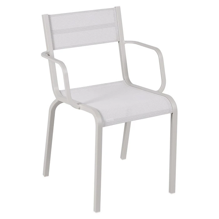 L’assise et le dossier sont en tissu outdoor TTE Batyline® les rendant indéchirables, résistants aux taches, moisissures et éventuelles déformations. Ces fauteuils de jardin Oléron sont également soumis à un traitement spécifique et à une haute protection pour un usage en extérieur. Le reste de la structure et les accoudoirs sont, eux, en aluminium. Cela rend la chaise très légère et résistante aux agressions extérieures et à la rouille.